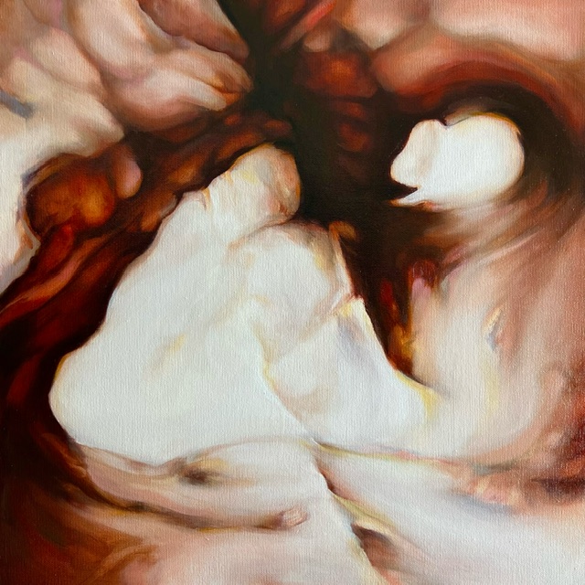 This work explores the symbolic relationship between caves and the subconscious mind. I treat the cave not just as a physical space but as a metaphor for the psyche, an inner landscape where truth is not always illuminated but rather felt through texture, echo and silence. My palette is often muted, earthen and mineral-built in layers like sediment and memories. By merging biomorphic abstraction with the symbolism of the cave I hope to transport the viewer into their own subterranean space, to dwell in ambiguity and discover what lies beneath the surface.